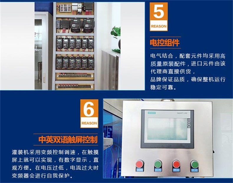 7.其他廠家采用調速電機,靠手動旋轉電機上的轉輪來改變輸送帶的速度,調整只能憑感覺極為不方便。我們的灌裝機采用變頻控制調速,在觸摸屏上就可以實現(xiàn),有數(shù)字顯示,直觀方便。在電壓過低,電流過大時變頻器會進行自我保護。