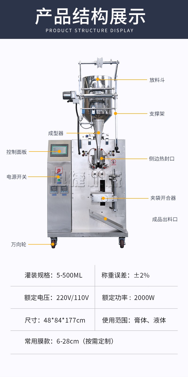 功 能:光電跟蹤及無極調(diào)速于一體,可周期完成下料、計(jì)量、日期打印、制袋、充填、封合、熱壓批號(hào)、分切計(jì)數(shù)等作業(yè)。