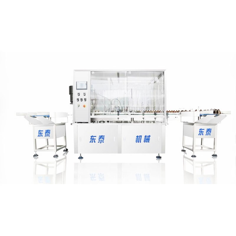 西林瓶(penicillin bottle),又稱:硼硅玻璃或鈉鈣玻璃管制(模制)注射劑瓶,是一種膠塞封口的小瓶子。早期盤尼西林多用其盛裝,故名西林瓶。西林瓶灌裝的多為液體,藥品、營養(yǎng)液等,針對這種小瓶型液體灌裝,機(jī)械廠家制造出小計量液體灌裝機(jī)來幫助液體灌裝的灌裝和生產(chǎn),小計量液體灌裝機(jī)也叫作西林瓶灌裝旋蓋一體機(jī),小計量液體灌裝機(jī)屬于聯(lián)動機(jī),其工作步驟包含了理瓶、灌裝、理蓋。掛蓋。壓蓋、旋蓋的步驟,滿足了液體包裝的大部分步驟,那么液體灌裝機(jī)該如何選擇呢?