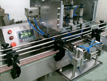 本機(jī)與物料接觸均為不銹鋼制作,完全符合GMP標(biāo)準(zhǔn)??焖倩罱舆B接,拆洗方便,灌裝量、灌裝速度均可調(diào)節(jié),更 換不同規(guī)格形狀的瓶子,不需更換零件,調(diào)整容易。另灌裝頭設(shè)有防滴漏裝置,灌裝無(wú)拉絲、滴漏;有瓶灌裝、無(wú)瓶不灌裝;設(shè)有計(jì)數(shù)功能,能準(zhǔn)確顯示當(dāng)前產(chǎn)量、 前班產(chǎn)量;并備有自動(dòng)加料控制接口,實(shí)現(xiàn)對(duì)加料的自動(dòng)控制。各動(dòng)作平穩(wěn)、準(zhǔn)確無(wú)誤,是目前較為理想的機(jī)電氣一體化產(chǎn)品。(該設(shè)備需要配備輔助設(shè)備:真空泵,真空儲(chǔ)氣罐)