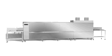 5、由減速機通過一對鏈輪運動,人工將碗碟插入輸送帶,碗碟先進入循環(huán)溫洗滌水區(qū),由上下兩排噴嘴洗滌水進行沖洗    ,接著進入熱水循環(huán)沖洗區(qū),由上下兩排噴嘴洗滌水進行沖洗,后,進入高溫沖洗的漂洗區(qū)進行沖洗,洗凈的碗碟由人工從輸送帶上取出。